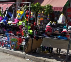 أصبح المواطن العابر المسكين مرغما على الزحف تحت البضائع المعلقة، أو القفز فوق السلع المعروضة على الأرض امام صمت المسؤولين وتضاعف عدد الباعة للمواد الاستهلاكية والمناسباتية،واعتقلت الأرصفة امام انظار والي الجهة والسلطات المحلية والمنتخبة فهل من مغيث ؟.