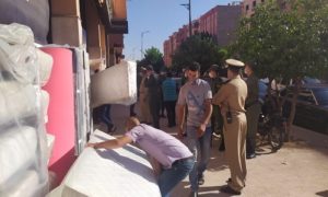 في هذا السياق، واستنادا على المعاينة الإعلامية التي زاولتها جريدة الملاحظ جورنال الإليكترونية بعين المكان، كثفت الملحقة الإدارية الحي الحسني، مساء الأحد 16 غشت 2020، دوريات تشكيلة مرتبة من عناصر القوات المساعدة وأعوان السلطة، وتأطير ميداني من القائد، رئيسة الملحقة الإدارية، مريم المغاري، تشديد الحضور والوجود الطارئ بمختلف المواقع التي يفترض فيها أماكن حضور بشري مستشر، وتجمعات مستفحلة ومستحلة من الإجراءات الوقائية من فايروس كوفيد 19، حيث تم تدخل عين الملحقة الإدارية الحي الحسني ضمن هذا الإطار، بأكبر تجمع بشري متحرك بالنقطة التجارية شارع الداخلة، الذي يغزر بالباعة الجائلين وعارضي المنتوجات الصناعية والإستهلاكية (الفراشة)، والذين عادة ما يغطون امتداد الشارع الذي تُغْرَزُ به وتستوطن {حطات} تجارية غير متلائمة مع المرحلة الصعبة التي يجتازها نفوذ الملحقة الإدارية الحي الحسني، ومن خلالها النفوذ الترابي لعمالة مراكش وعموم الوطن، إذ لم تستنكف أو تحجم عملية التدخل من مواجهة وضعية شارع الداخلة الذي يعاصر ظرفية حرجة من شأو التجمع في أثناءها العصف أكثر بالنتائج الحميدة التي تحققت على مستوى المدينة خلال المرحلة الأولى على ظهور الفايروس وتسجيل أول حالة إصابة وطنيا في شهر مارس نفس السنة، إذ في مجرى ذلك، كان العمل من قبل نفس سلطة الملحقة الإدارية الحي الحسني، على تفكيك نفس {الحطات التجارية}، وإرغامها على مغادرة الشارع، وإخلاءه من تجمعاتها التي تنذر باستفحال الإصابة، وتخوفات أن يرتفع معدل المنحنى إلى المؤشر الذي يعلن حدوث {الإنتكاسة} في التدابير الإحترازية الوقائية من الفايروس، ويعلن معه أيضا {ارتكاسا} في البروتوكول العلاجي الذي لا تزال نتائجه مستقرة رغم ارتفاع الإصابة إلى أكثر من الضعفين منذ الثلث الأخير من يوليو والأسبوعين المنصرمين من غشت نفس السنة.