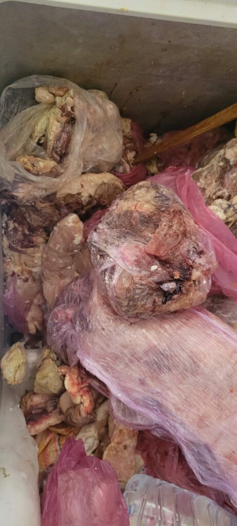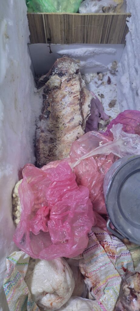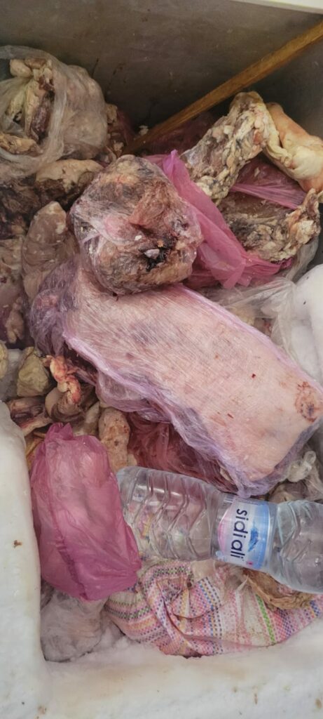 وقد تبيّن أن اللحوم المضبوطة كانت مجمّدة بطريقة تفتقر لأبسط شروط السلامة الصحية، ما يشكّل خطرًا محدقًا بصحة المستهلكين.