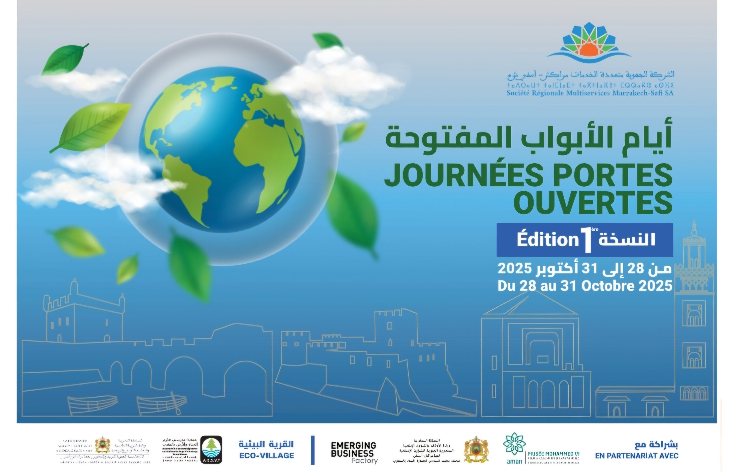 تُقام هذه الأيام المفتوحة بشراكة مع وزارة الأوقاف والشؤون الإسلامية بجهة مراكش آسفي، ومتحف محمد السادس لحضارة الماء، والقرية البيئية، وجمعية مدرسي علوم الحياة والأرض، والأكاديمية الجهوية للتربية والتكوين، حيث سيتم تنظيم لقاءات تفاعلية وورشات توعوية ومعارض ميدانية تبرز أهمية الإدارة المستدامة للمياه والطاقة، ودور الشركة في خدمة المواطن والتنمية الجهوية.