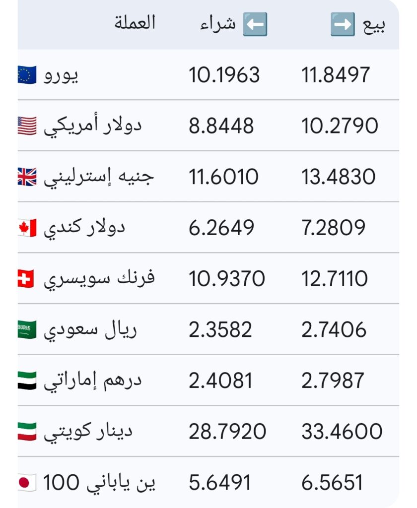 وتُعد هذه الأسعار بمثابة الأسعار المرجعية، مع التنويه إلى أن أسعار البيع والشراء الفعلية في البنوك ومؤسسات الصرف قد تختلف قليلاً.