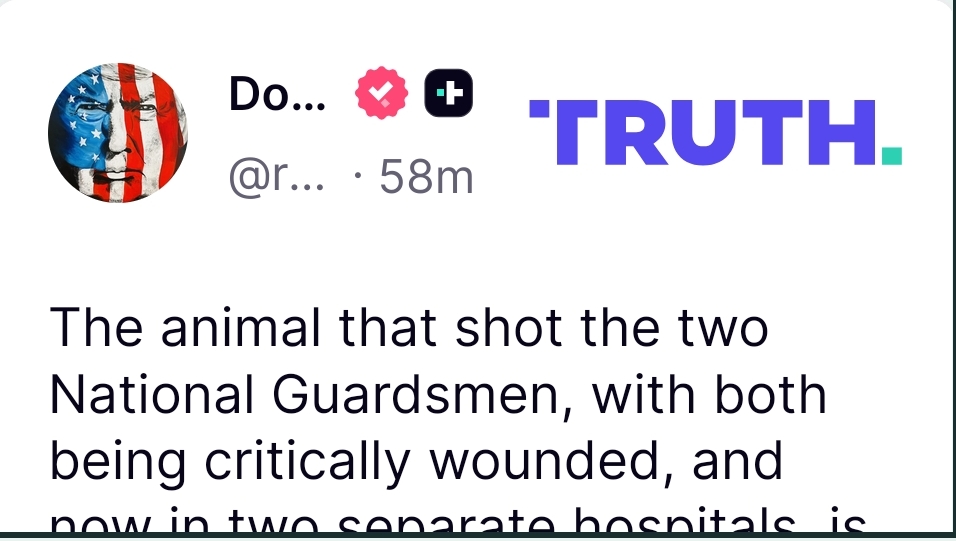 كما أشار ترمب إلى أن مطلق النار أُصيب هو الآخر بجروح بالغة، وكتب في منشور على موقع “تروث سوشيال”: «الحيوان الذي أطلق النار على اثنين من أفراد الحرس الوطني، وكلاهما مصاب بجروح خطيرة، ويرقدان الآن في مستشفيين منفصلين، أُصيب أيضا بجروح بالغة، لكنه سيدفع ثمناً باهظاً».
