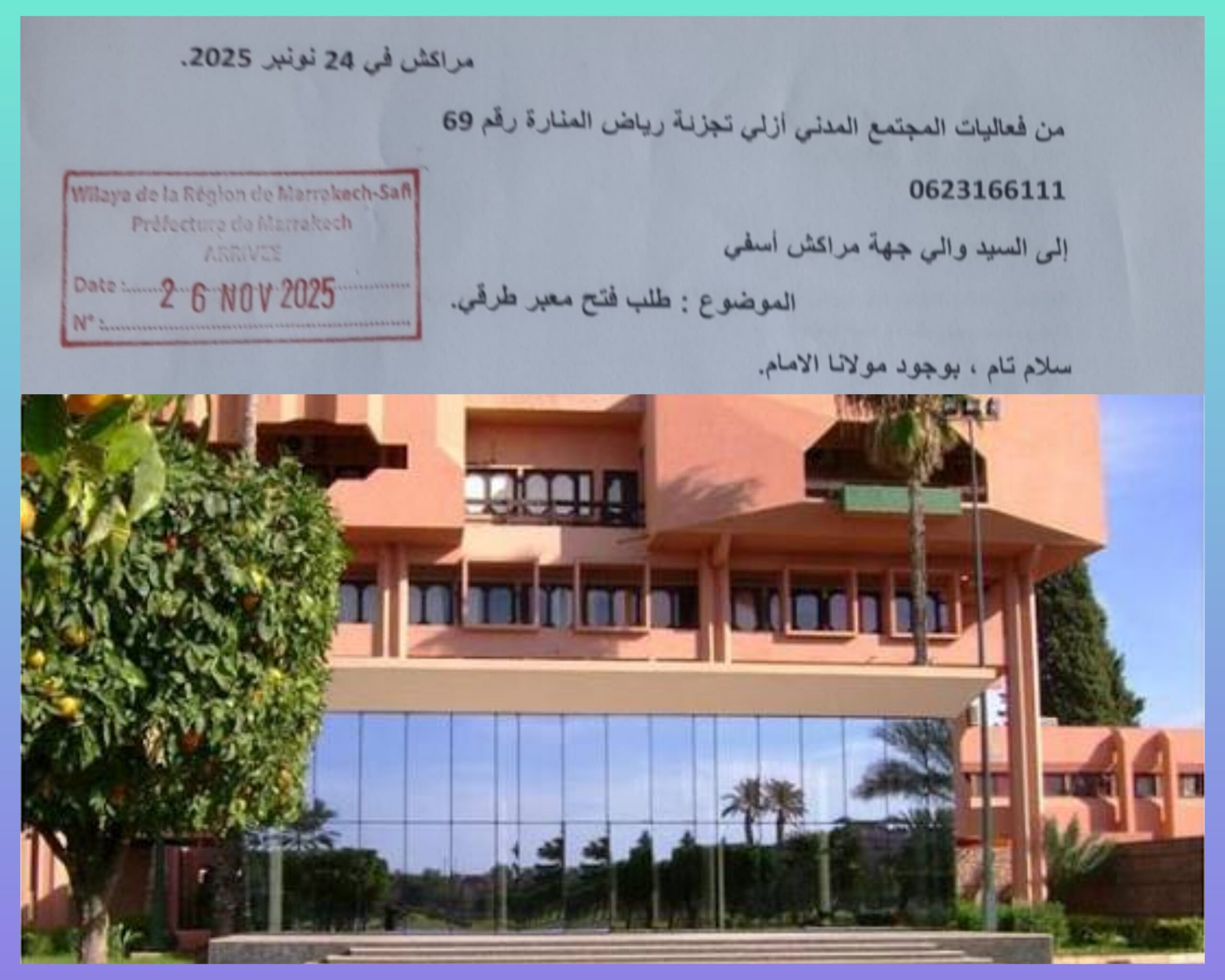 طالبت جمعيات المجتمع المدني بأحياء الرياض وحي أزلي بمدينة مراكش، عبر مراسلة رسمية موجهة إلى والي جهة مراكش-آسفي وعامل عمالة مراكش بتاريخ 24 نونبر 2025، بضرورة التدخل العاجل لـفتح معبر طرقي يربط بين المقطع الطرقي الموجود بين الحيّين المذكورين (شارع المحمدية) وعين مزوار، مرورًا بالمستشفى العسكري ابن سينا.
