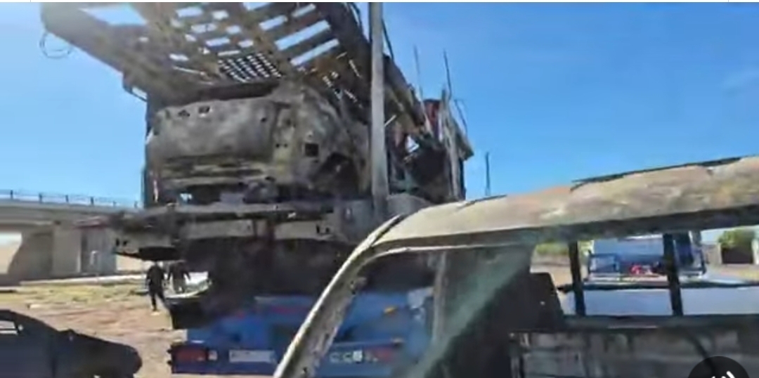 و تظهر المشاهد الحصرية التي توصلنا بها من عين المكان  تفحم هياكل السيارات والشاحنات بالكامل.