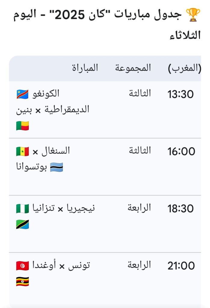 “كان 2025 “… مباريات اليوم الثلاثاء و القنوات الناقلة