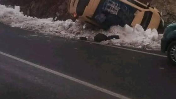 الثلوج تتسبب في إنقلاب سيارة أجرة بـ”أكلموس” ضواحي ورزازات