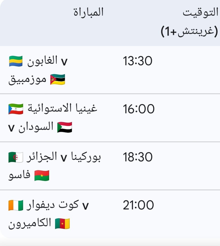 وتتجه الأنظار صوب قمتين ناريتين؛ الأولى تجمع المنتخب الجزائري الساعي لتأكيد صدارته أمام “خيول” بوركينا فاسو، والثانية صدام كلاسيكي يجمع بين حامل اللقب كوت ديفوار وأسود الكاميرون في مواجهة لا تقبل القسمة على اثنين. كما يسعى المنتخب السوداني لتحقيق نتيجة إيجابية أمام غينيا الاستوائية لتعزيز حظوظه في التأهل، وسط أجواء جماهرية صاخبة وتنظيم لوجستي رفيع المستوى في مدن الدار البيضاء، الرباط، ومراكش حسب التوقيت التالي: