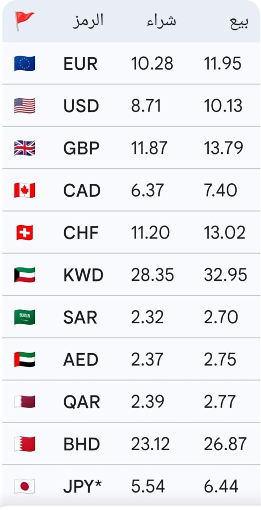 جدول أسعار صرف العملات (05 فبراير 2026)
