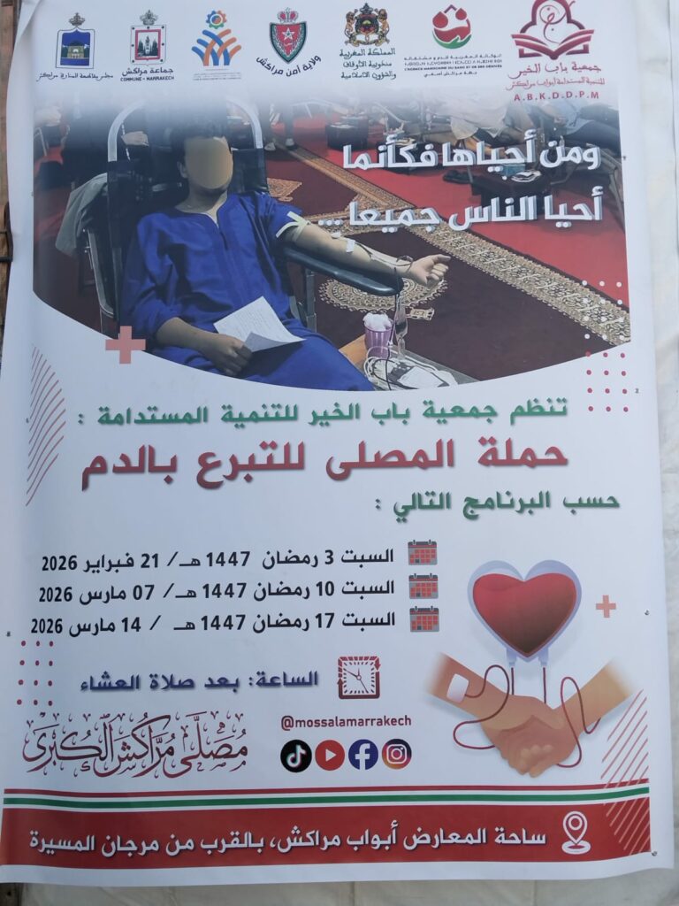إن النجاح الذي تحقق في ليلة السبت يوجه رسالة أمل قوية للمرضى المحتاجين لنقل الدم، ويؤكد أن “مصلى مراكش الكبرى” بات منارة ليس فقط للعبادة، بل لممارسة أسمى صور العطاء الإنساني، مصداقاً لقوله تعالى في الآية الكريمة : “وَمَنْ أَحْيَاهَا فَكَأَنَّمَا أَحْيَا النَّاسَ جَمِيعًا”.