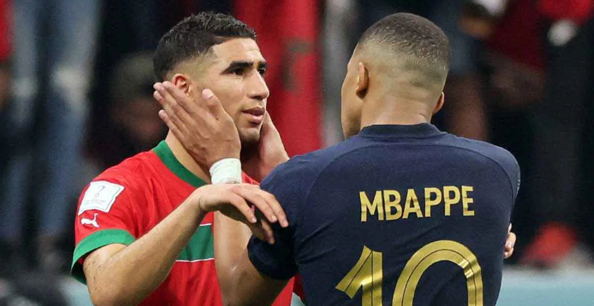 وكشف مبابي، خلال حديثه في برنامج “The Bridge” الذي يقدمه أوريليان تشواميني، عن كواليس تواصله مع حكيمي قبل المواجهة التي جمعت منتخبي فرنسا والمغرب في نصف نهائي كأس العالم 2022، أن التواصل بينهما استمر بشكل طبيعي قبل اللقاء، حيث دارت بينهما محادثة طويلة قاربت ساعة ونصف، انصبت على التخطيط لقضاء عطلة مشتركة بعد نهاية البطولة، إلى جانب تبادل الحديث حول أمور عائلية، من بينها تواجد أفراد عائلته في المدرجات.