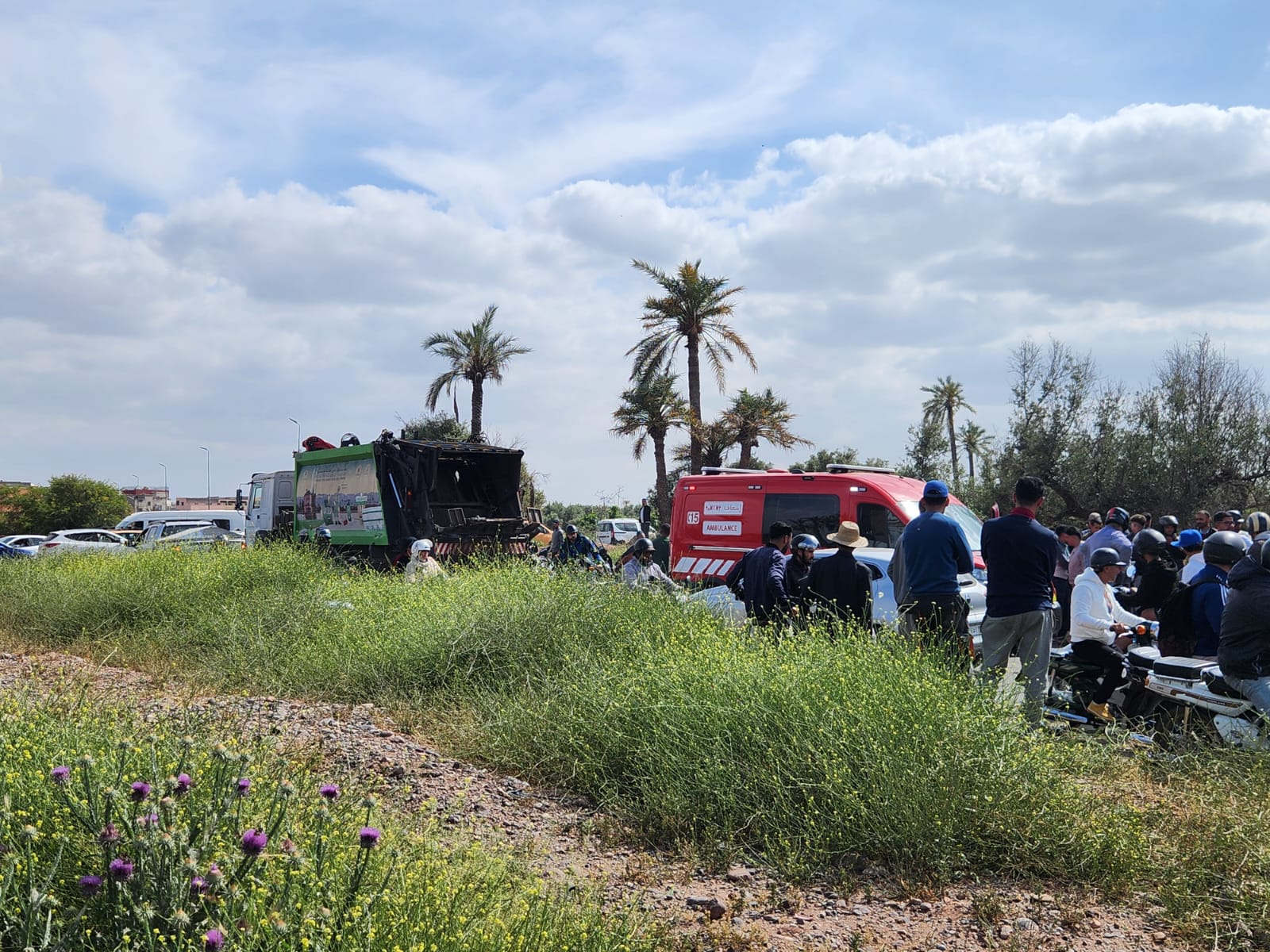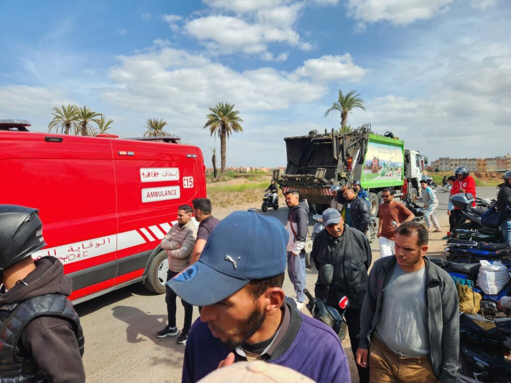 فاجعة قرب مطار مراكش… “التجاوز القاتل” ينهي حياة شاب تحت عجلات شاحنة للنظافة + صور