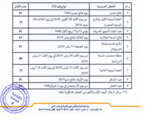 وفيما يلي لائحة العطل للموسم الدراسي 2018/2019