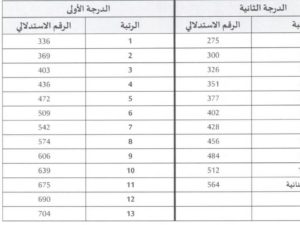 تشتمل الدرجة الثانية لإطار أستاذ التعليم الإبتدائي وإطار أستاذ التعليم الثانوي على 10 رتب، بالإضافة، إلى رتب استثنائية، وتشتمل الدرجة الأولى لهذين الإطارين على 13 رتبة؛ وتتوزع الأرقام الإستدلالية المطابقة لهذه الرتب كما يلي:
