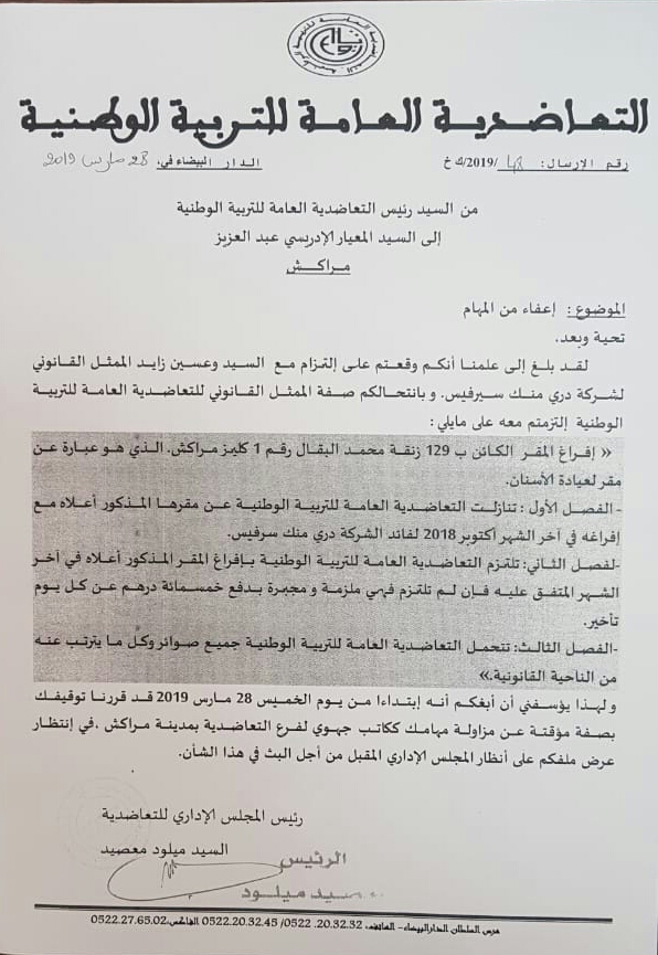 أعضاء المجلس الاداري للتعاضدية العامة للتربية الوطنية بجهة “مراكش – اسفي” يثمنون قرار توقيف كاتبهم الجهوي