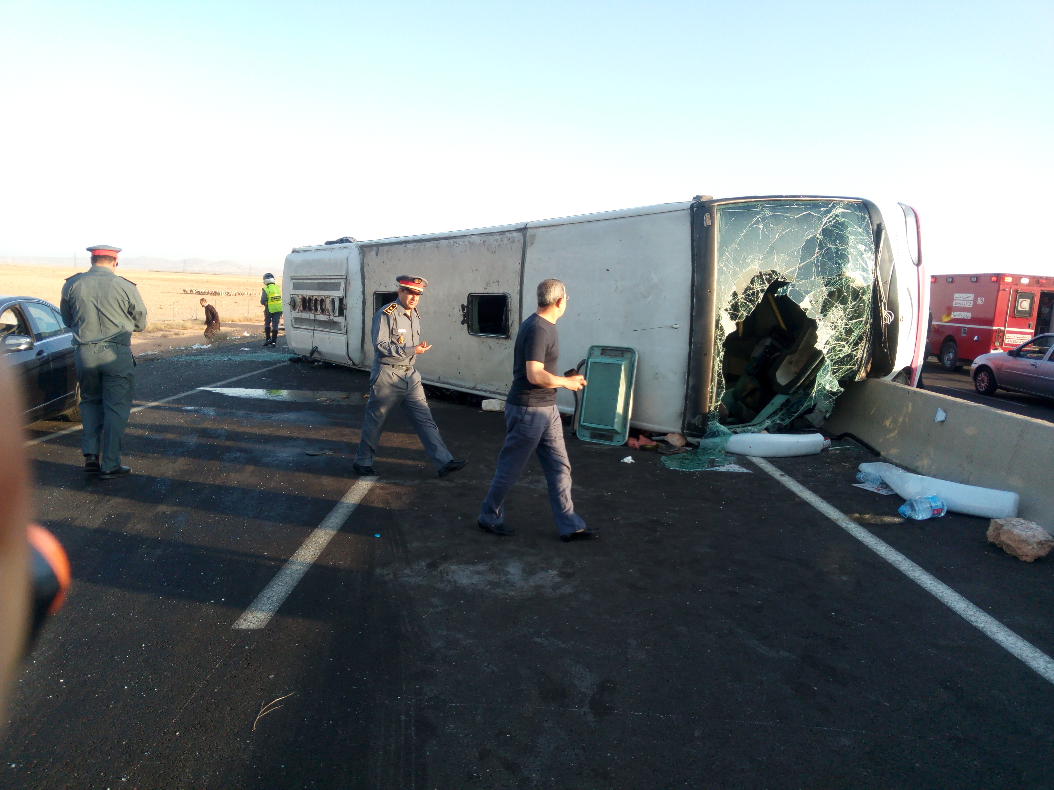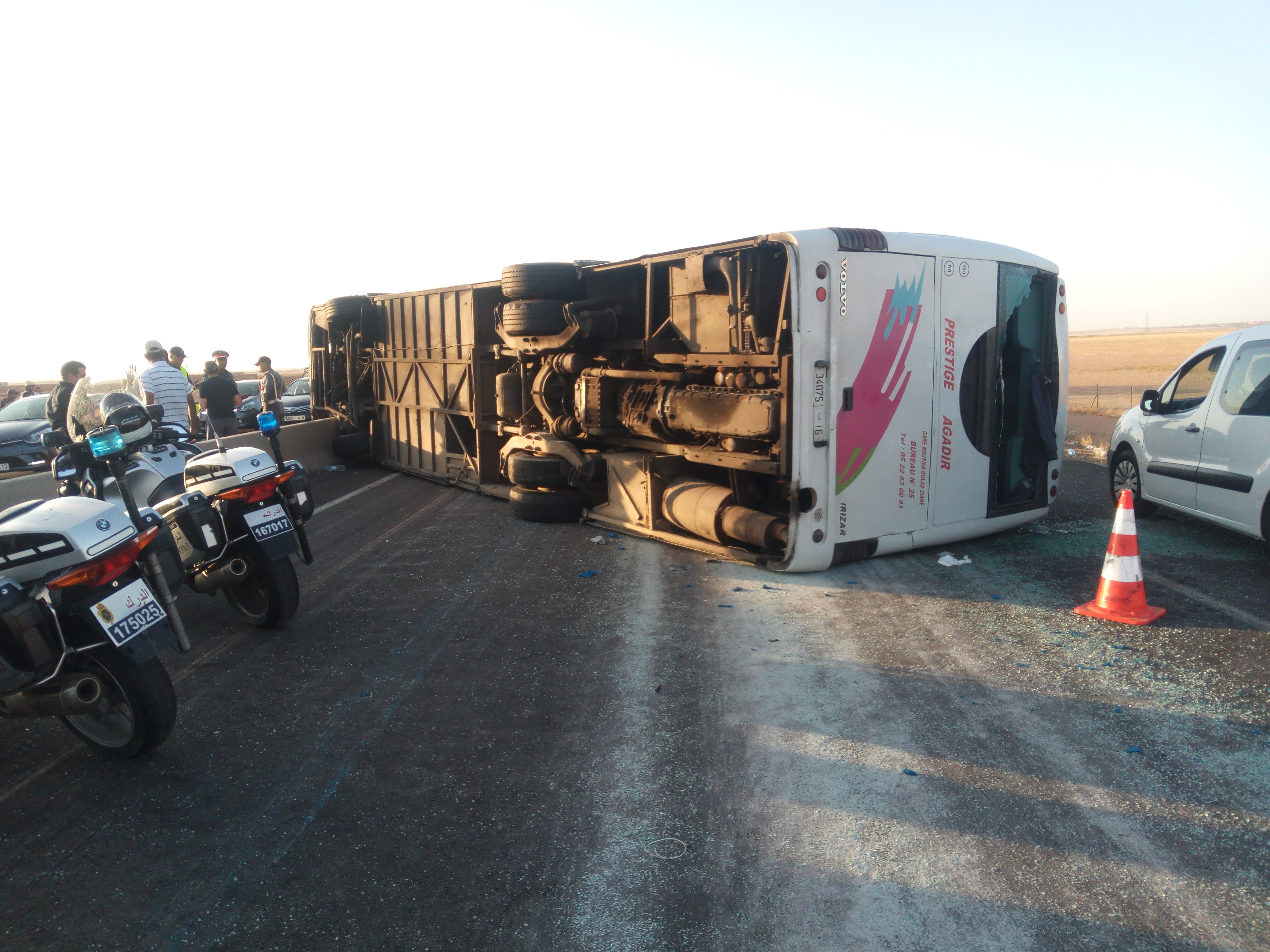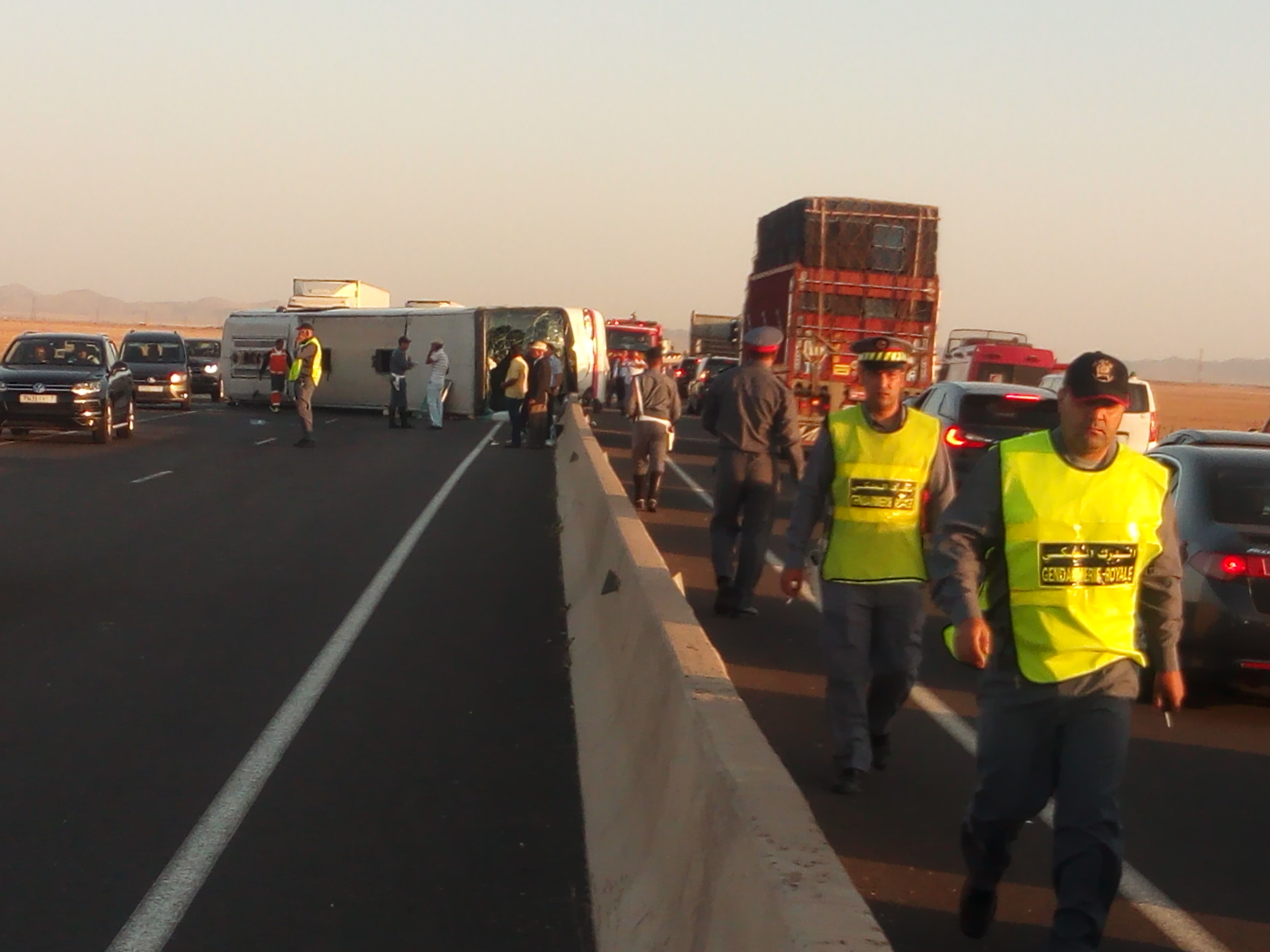 عاجل: انقلاب حافلة للنقل العمومي بالطريق السيار بين مراكش وابن جرير يخلف اصابات خطيرة + صور