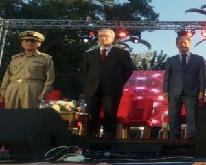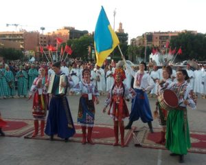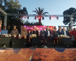 الدورة الخمسون (50) من المهرجان الوطني للفنون الشعبية بمراكش، والتي من المقرر أن تمتد إلى السادس نفس شهر نفس السنة، والي جهة مراكش- آسفي، عامل عمالة مراكش، كريم قسي لحلو، رئيس جمعية الأطلس الكبير، رئيس اللجنة المنظمة للمهرجان، محمد الكنيدري، مندوب وزارة الثقافة والإتصال/ قطاع الإتصال، عبد المجيد أبضا، شخصيات مدنية وعسكرية، المنتخبون، أغنى عرضها التقديمي أمام المنصة الرسمية بساحة الحارثي، عروض المجموعات الفلكلورية الأجنبية المشاركة في الدورة، خصوصا، المجموعة القادمة من جمهورية أوكرانيا والجمهورية العربية الجزائرية.