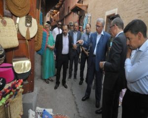وابتغت زيارة والي الجهة، عامل عمالة مراكش، لحلو، بحسب نفس البلاغ، الوقوف على تقدم سير أشغال تأهيل عدد من الفنادق والمدارات الروحية والسياحية، واحترام نفس الأشغال للمعايير والضوابط التقنية، انطلقت من ساحة روض العروس في تجاه مدرسة سيدي عبد العزيز وفندق الباشا مرورا بساحة إبن يوسف والرحبة القديمة والمواسين وساحة باب الفتوح، وصولا إلى دار الباشا، حيث أشاد تجار وحرفيو الفنادق العتيقة بالمجهود المبذول للرقي بمستوى الصناعة التقليدية في إطار ذات برنامج إعادة التأهيل الحضري للمدينة القديمة بمراكش.