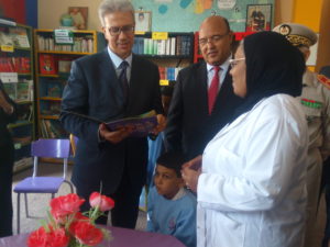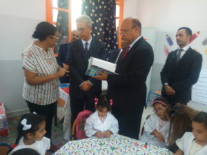 والي جهة مراكش يعطي إنطلاقة المبادرة الملكية مليون محفظة بمدرسة الشابي الإبتدائية