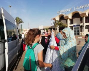 وقد أستهلت فقرات هذا الملتقى باستقبال أعضاء القافلة العالمية للسلم و اللاعنف المنظمة من طرف جمعية أبناء العرائش بالمهجر بمدريد في المدخل الشمالي لمدينة العيون ليتجه الجميع في موكب مميز نحو محل إقامتهم حيث تم الترحيب بهم بالحليب و التمر و الزغاريد من طرف نشطاء المجتمع المدني بمدينة العيون، وبعد الترحيب بهم من طرف مديرة الملتقى ورئيسة جمعية الإخلاص و التنمية بالعيون السيدة عكيدة عبة، ألقي الأستاذ محمد عالي أحسينة أحد منظمي الملتقى كلمة ترحيبية في حق أعضاء القافلة العالمية للسلم و اللاعنف، التي كانت تضم عدة أجانب من ضمنهم: -السيد خوسي مينيوس رئيس جمعية تلاقح الثقافات بمدريد، و السيد رفائيل ديلا روبيا رئيس قافلة السلام عبر العالم، و السيدة سونيا بيني كراس باس فيدرالية عالم بدون حروب بالإكوادور-، حيث شكرهم على مبادرتهم الإنسانية العالمية و تكبد عناء السفر و الترحال من أجل نشر ثقافة السلم و اللاعنف.
