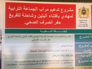 بالإضافة إلى مشروع تدعيم مرآب الجماعة الترابية لمهادي باقتناء آليتين وشاحنة لتفريغ حفر الصرف الصحي بتكلفة إجمالية تبلغ 491.000,00 درهم، حيث تم اقتناء ممهدة الطريق (Niveleuse) قيمتها المالية 2755000,00 درهم، بالإضافة إلى جرافة (Tracetopelle) بقيمة 860000,00 درهم، وشاحنة لتفريغ حفر الصرف الصحي (Hydro-cureuse) بقيمة 1286000,00 درهم. كما أعطيت بالمناسبة انطلاقة عدد من عمليات التويزي بقيادة عين شعيب، من ضمنها حملات النظافة بفضاءات المؤسسات التعليمية وطول جانب الطريق السريع وجنبات وادي سوس، وحملة النظافة وصباغة الأرصفة والواجهات بمركز جماعة سيدي موسى ومركز جماعة الكفيفات وحملة محاربة الحشرات القرمزية بجماعة سيدي بوموسى وجماعة سيدي احماد أوعمر وجماعة الكفيفات وجماعة أهل الرمل.