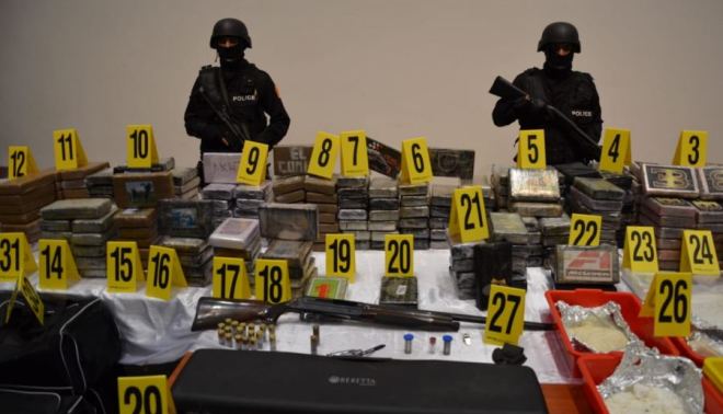 وذكر بلاغ للمديرية العامة للأمن الوطني أن الأبحاث الأولية أسفرت عن توقيف شخص وسيدة بمدينة الدار البيضاء، يبلغان من العمر 40 و38 سنة، وذلك قبل أن تقود التحريات إلى تحديد الشقة التي تم تسخيرها لتخزين كميات الكوكايين، والتي مكنت عمليات التفتيش المنجزة بداخلها من حجز معدات ومنقولات إضافية، عبارة عن بندقية صيد و19 خرطوشة من عيار 22 ملمتر، ومبالغ مالية بالعملتين الوطنية والأوروبية، وقنينة غاز مسيل للدموع، و12 ساعة يدوية باهظة الثمن، و10 قطع مختلفة من المجوهرات، وكاميرا رقمية، وثلاثة دفاتر شيكات، وسند لأمر يتضمن مبلغا ماليا قيمته مليون و20 ألف درهم، فضلا عن وثائق سفر وسندات هوية في إسم الغير، وسيارة رباعية الدفع.