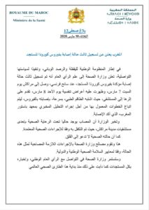 وأشارت الوزارة إلى أنها “ستستمر في التواصل مع الرأي العام الوطني، وإخباره بكل المستجدات كما دأبت على ذلك منذ بداية هذا الطارئ الصحي العالمي.