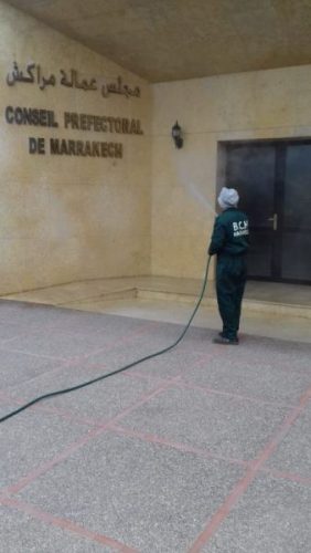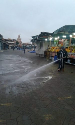 وفي مراكش، شرعت الجهات المعنية بمدينة مراكش، في تعقيم مجموعة من المؤسسات، بما فيها الولاية، ولاية الأمن، الجماعة، الملحقات الإدارية، وايضا الساحات العمومية، ساحة جامع لفنا، المحاكم، بالإضافة إلى سيارات نقل الأموات ونقل المرضى والجرحى وحافلات النقل العمومي، وذلك وفق برنامج مسطر لهذا الغرض وبتنسيق مع السلطة المحلية والمصالح الخارجية.