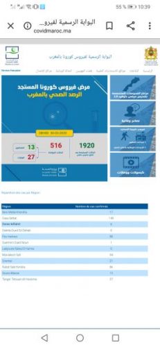 بعدما ارتفع عدد المصابين بمرض “كورونا” في المغرب إلى 516 حالة مؤكدة لحدود صباح اليوم الإثنين 30 مارس الجاري، أعلنت الوزارة عن التوزيع الجديد حسب الجهات.
