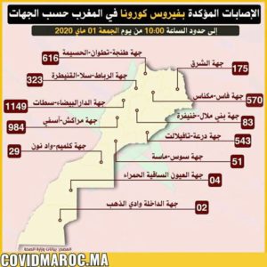 التوزيع الجغرافي لحالات الإصابة بكورونا بالمعرب