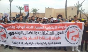 والتقت الشعارات التي أبرزها المحيون للذكرى في جملة المناهضة للفساد والتشديد على إسقاطه، والمضي نحو تحقيق الكرامة والعدالة الإجتماعيين، حيث في هذا السياق أشهرت{الجبهة الاجتماعية المغربية/اللجنة المحلية للجلهة بمراكش} شعار {العمل المشترك والنضال الوحدوي- طريقنا لإسقاط الفساد والإستبداد وتحقيق الحرية والكرامة والمساواة والعدالة الإجتماعية}، بينما رفعت لافتة {الإتحاد الكونفدرالي لإقليمي مراكش/ الحوز} المنضوي تحت لواء { الكونفدرالية الديمقراطية للشغل} شعار {مواصلة النضال ضد- 1: الفساد وخرق القانون واستغلال العمال والتسريحات الجماعية- 2: محاربة العمل النقابي والتضييق على الحريات النقابية والحق في التعبير والإحتجاج}، هذا في ما انضم إلى إحياء الذكرى العاشرة لحركة 20 فبراير مطالبون ومطالبات بالإفراج عن الصحافي عمر الراضي، وقد أشهروا صورة الصحافي المعتقل وقد كتبت عليها جملة {الحرية للراضي عمر- الحرية لكل معتقلي الرأي}، وأخرى تظهر هاشتاج {الصحافة ليست جريمة # لا لتكميم الأفواه #لا لقمع حرية التعبير}.