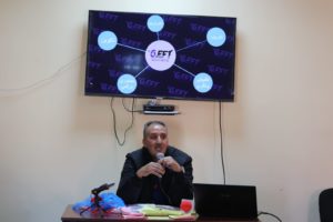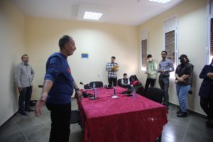 لينتقل بعد ذلك إلى الشق التطبيقي حيث خصص المنتج والمخرج شهيد الرحموني استديو من داخل إحدى القاعات موفرا بذلك جميع الأدوات التي يحتاجها الصحفيون والتقنيون، شرح أدواتها بالتفصيل لباقي المشاركين، وكيفية استعمالها.
