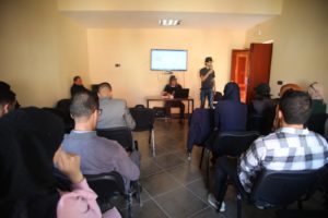 وبعد ذلك باشر الأستاذ ميلود بوعمامة شرح عملية الاعداد والتقديم للبرتمج التلفزية ليترك المجال لتمارين تطبيقية للمتكونين لتقديم بعض من شدرات لبرامج قد اختارو الحديث عنها مسبقا.