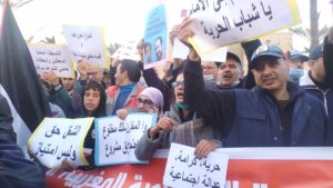عنت مختلف التنظيمات المشاركة في الوقفة التي خلدت بها حركة 20 فبراير بمراكش  ذكرى انطلاقتها قبل حوالي 10سنوات ،برفع شعارات الدعوة الى الحوار فيما يهم السياسة الإجتماعية التي تنتهجها حكومة عزيز اخنوش التي مافتئت تثقل كاهل المواطن بالزيادات المتتالية في المواد الإستهلاكية الأساسية ،وتأتي في ظل سياق مواصلة فيروس كورونا في الإنتشار وماترتب عن ذلك من إغلاق لسوق الدخل وانحسار  الأرزاق ،وفي ظل حالة الجفاف  التي فاقمت من أزمة الدخل الفردي والجماعي ، وكما الدعوة إلى صيانة الحقوق المدنية والسياسية وحمايتها من التراجع الذي انبأت به إجراءات متخذة بإستغلال حالة الطوارئ الصحية .