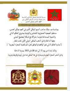 بمناسبة عيد ميلاد صاحب السمو الملكي الامير مولاي الحسن تحتضن مدينة الداخلة نهاية الأسبوع الجاري الملتقی الدولي الأول تحت شعار”مبادرة الحكم الذاتي تعزز الواقعية والتوافق لحل دائم لقضية الصحراء المغربية”.
