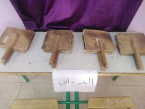 لينتقل الحضول إلي زيارة الأروقة الخاصة بالتراث اللامادي بالمعرض داخل المؤسسة والذي تميز بالتنوع في المعروضات التي كان ولا زال أهل القبيلة متشبتين باستعمالها حتي وإن بدأ من الأدوات البدائية وقد قسمت المعروضات إلى رواق الألبسة والاعراس و رواق الصناعة التقليدية ثم رواق الذاكرة كذلك رواق ادوات المطبخ والطهي إضافة إلى رواق الموروث الثقافي والفني لينتقل الحضور إلى زيارة الخيمة التقليدية التي أقيم بها حفل غذاء على شرف الحضور.