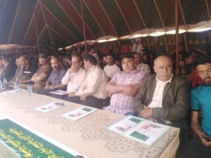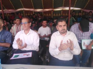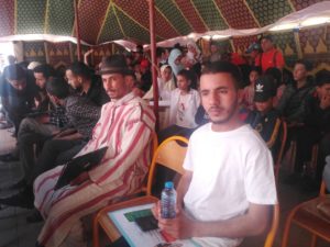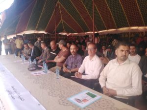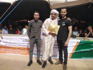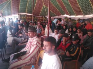 في اولى ساعات اليوم الأول عرف استقبال الضيوف التي توافدت من خارج الجماعة وكذلك الاطر الإدارية والسادة الأساتذة والاستاذات وتلاميذ المؤسسة لتنطلق فعاليات هذا الملتقى الأول بالاقليم والفريد من نوعه الذي يعنى بثرات الأجداد، استهل السيد مدير المؤسسة كلمته مرحبا بالضيوف الكرام حيث أنه استدرج ذلك تطبيق بناء على مضامين القانون الإطار 51/17 ولاسيما المشروع رقم 6 المتعلق بتنشيط الحياة المدرسية, وفي إطار انفتاح المؤسسة على المحيط وتقوية روابط الشراكة والتعاون بين المؤسسة وشركائها, وفي إطار تنمية حب المواطنة والاعتزاز بالانتماء للوطن , وتفعيلا لمشروع المؤسسة المندمج وتنزيل أنشطة الحياة المدرسية, دأبت المؤسسة إلى تنظيم هذا الملتقى لإحياء الثراث التي تزخر به هذه القبيلة. وفي إلقاء عرض تعريفي للقبيلة (اولاد سيدي علي) من طرف رئيس الجمعية الشبابية للثقافة والتنمية والرياضة حيث خصص ورقة بالقبيلة فذكر النسب الشريف والشجرة المباركة لهذه القبية : سيدي علي بوشنافة هو القطب الوالي الصالح سيدي علي بن عبد الله الملقب” بوشنافة” والذي يوجد قبره بجبال اكسان قرب وادي الصوان تندرارة إقليم فجيج.