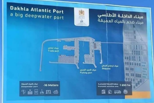 مثال على ذلك هو مشروع ميناء الداخلة الأطلسي الضخم، حيث يستقبل الزوار بلوحة ضخمة مكتوبة باللغتين العربية والإنجليزية.